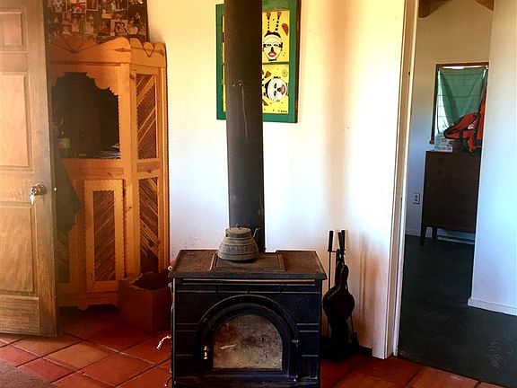 There's plenty of room for you & your animals on this sprawling & completely fenced 2 acre property in Lower Colonias. So bring your horses, goats, chickens and pets and settle into to this lovely 2 bedroom/1 bath home. The 1053 sq ft. open floor plan is well designed to allow for family gatherings & entertaining. Kitchen has ample cabinet space and a well designed large pantry room offering additional storage. Brick & title floors, vigas and wood burning stove add to the Southwest feel of this property. House was designed with huge energy efficient windows for passive solar heat & great light throughout the house. The high efficiency wood burning stove keeps the house cozy & utility costs down. Mud room is great for storage but you can easily convert this three season 170 sq ft room into extra living space if desired. The enormous Quonset hut is a bonus! It has electricity, stub-in for water and insulated foundation. Use as a garage workshop or artist studio. Sectioned fenced areas, chicken coop, and plenty of open space is suitable & safe for horses and your pets. Easy access to the Taos Ski Valley and Town of Taos.