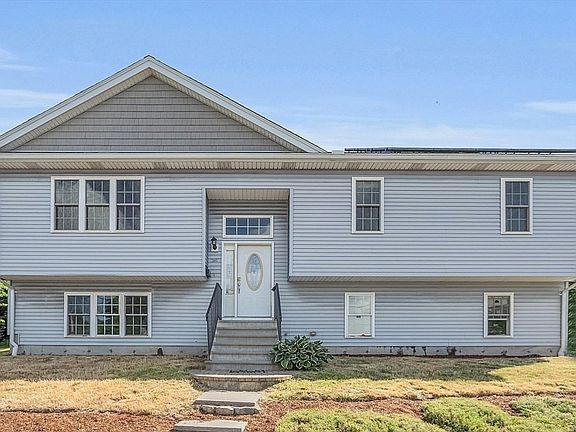 Nestled at the corner of Massasoit and Stoneham Road, this contemporary split-level home, built in 2017, showcases both style and functionality. The exterior boasts low-maintenance vinyl siding, ensuring lasting beauty with minimal upkeep. Step inside to be greeted by an expansive open floor plan that effortlessly combines modern living with comfort. The living and dining rooms feature striking cathedral ceilings, creating an airy and spacious ambiance. These spaces seamlessly flow into a large, kitchen, perfect for culinary enthusiasts, and offer direct access to a deck via a convenient slider. The main floor hosts three generously sized bedrooms, including a master suite with its own private bathroom for ultimate relaxation. An additional full bathroom serves the other bedrooms, ensuring convenience for family and guests. The lower level is equally impressive, featuring a large fourth bedroom, a full bathroom, a laundry area, and a two-car garage. This home is a remarkable value!