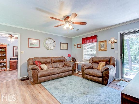 Peace & tranquility await at this well maintained, 4 sided brick, ranch. This home is situated on 1 private/wooded acre with a fenced backyard & shed/workshop. Enjoy spending time on the welcoming front porch or watching wildlife from the back patio. This home features: beautiful LVP flooring throughout (no carpet)***well appointed kitchen with granite counter-tops, title backsplash & stainless steel appliances***spacious great room perfect for entertaining***master bedroom accomodates a king sized bed with plenty of room to spare & two walk-in closets***hallway bath has tile floors & tub/shower combo***secondary bedroom has ceiling fan & walk-in closet***3rd bedroom/family room features bay window, walk-in closet & laundry room. Internet is available. Call and schedule your showing today! USDA loan eligible.