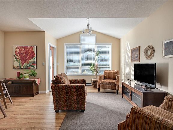 Rare 2 Bdrm, 2 Bath bright & sunny south facing unit in Madison Ct. This unique 55+ complex consists of individual patio homes with a shared community space. Maint. fees incl weekly light housekeeping. This one level patio home designed for accessibility & care free living has much to offer while you age in place. New hot water tank, updated flooring, blinds, vaulted ceiling, open floor plan and large south facing windows that flood the suite with natural light. You can access your unit from the south facing patio and private entrance or enter through the secured main door with intercom system. The community social space has comfy seating around a gas fireplace and a common area where you can enjoy puzzles or games with the neighbours, and you can plant your veggies in the community garden. Laundry is included in fees and a only a few steps from the unit. Enjoy sharing with only seven neighbouring suites in your building. Non-smoking building & 1 small dog or cat friendly (see bylaws).