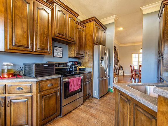 Country Living! 3 bedroom, 2 bath all brick home sitting on 8.5+/- acres. Completely fenced and cross fenced. Hardwood floors, Corian counters, master bath has whirlpool tub and separate shower. Home is a fixer upper, approx. 1,855 sq ft, on a dead-end street.