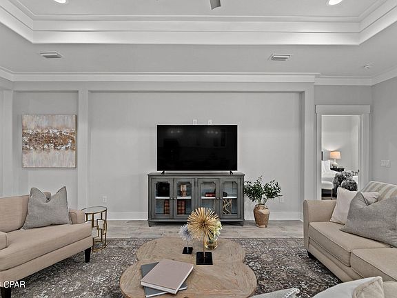 Welcome to Laguna Haven. This new secluded gated community located at the West End of Panama City Beach, north of US-98. This Florence floor plan features 4 bedrooms, 2 full baths and 2 car garage. Step inside the home to find wood-look porcelain tile, soaring ceilings, crown molding, bull-nose corners give those extra touches of elegance, and a designer lighting package. Your kitchen features Samsung (fingerprint-proof) stainless steel appliances, a walk-in pantry, soft-close Shaker cabinets, an under-mount sink, Calacatta Bravos quartz countertops, and Satory mosaic backsplash. Just steps away, you can enjoy the fully landscaped backyard featuring a built-in sprinkler system with a separate irrigation meter. Back inside, the bathrooms include all of the same high-end finishes found throughout the rest of the home, including shaker-style vanities, designer fixtures and porcelain tiles. The master bedroom boasts tray ceilings & recessed LED lights, while the ensuite has double sinks and a custom-tiled walk-in shower with a glass door. Don't forget about all the storage in the laundry room and attached garage! This home comes with a 1-year builder warranty, and the HOA includes exterior & common area landscaping and trash pick-up, as well as community lights, fountain & gate maintenance. Public water and sewer. Laguna Haven is close to schools and all the shopping, dining & entertainment options along the Panama City Beach Pkwy and 30A. Another BONUS for you in this community that's LESS THAN ONE MILE from the beach: Short-term rentals are allowed!