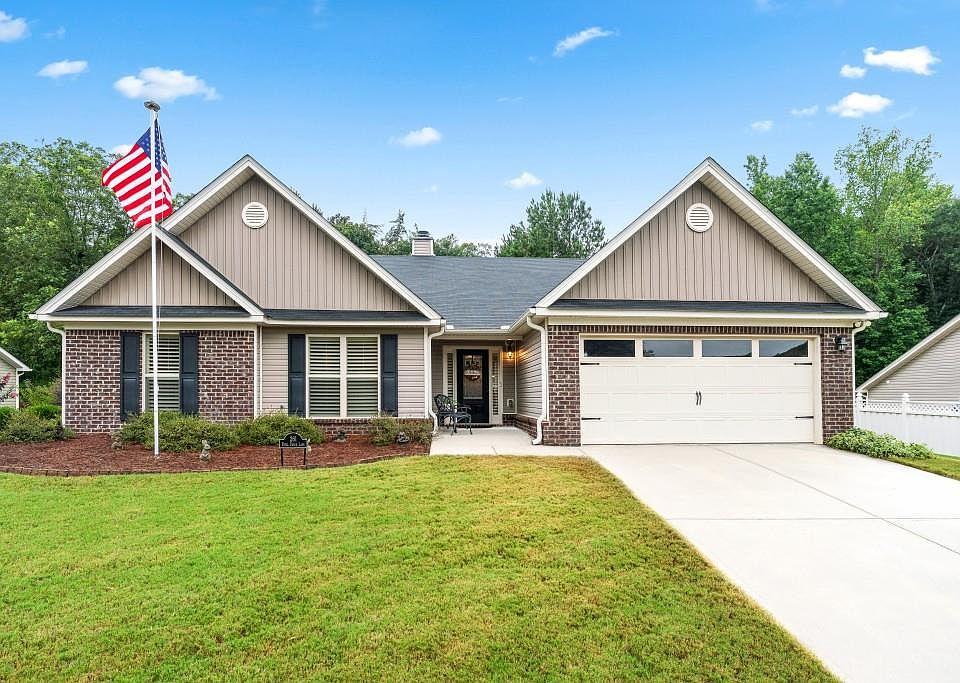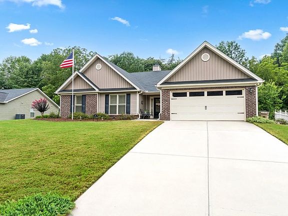 Welcome to the perfect place to call home this fall. No HOA, cozy, well-maintained community with sidewalks and streetlights. This single-level 4-bedroom, 2.5-bath home is designed for comfort and connection. Picture crisp evenings by the raised brick hearth fireplace with gas logs, shelves lined with your favorite family photos and books, and game-day spreads on the large granite island in the kitchen. With granite countertops, a spacious island, a walk-in pantry, and plenty of cabinetry, this kitchen is ready for tailgates, holiday baking, or casual family dinners. You’ll love the formal dining room for special gatherings and the sunny office/flex space that adapts to your lifestyle. Bedrooms are generously sized, including a primary suite with a walk-in closet and private bath — your own retreat at the end of the day. Step outside and enjoy the season: an oversized patio for entertaining, a cozy firepit for sweater-weather nights with friends, and a large yard with room for RV or boat storage. From roasting s’mores to watching football outdoors, this backyard is made for memories. All of this is set in a small, well-maintained, family-friendly neighborhood with no HOA, plus the bonus of sidewalks and streetlights for safe, welcoming streets. Conveniently located near I-85, shopping, and dining, you’ll love both the home and the community. Homes that bring this much warmth, space, and lifestyle don’t last long. Schedule your showing today and make it yours this season!