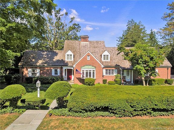 Iconic 1930s all brick 4,467 sq ft Custom Tudor situated on 1.5 acres in the center of town. Public Utilities, natural gas and a whole house Generac generator make for easy living. The tastefully updated home boasts a versatile floor plan which includes a 1st floor bedroom w/full bath, a library/office which could double as a 1st floor second bedroom. Gourmet Kitchen with gas cook top and stainless steel appliances, columned Living room and a private Master Suite with adjacent office or nursery with access to a private deck. Additionally the home offers updated mechanicals, a front and back staircase, finished LL media room, HW floors thru-out, central air and East/West exposure. The spacious lawns are perfect for a pool, pool house and tennis courts. Walking distance to the linear path, Park and Rec and Cheshire high school. Home offers a complete one year home warranty. A Rare find in Cheshire!! A Great value!