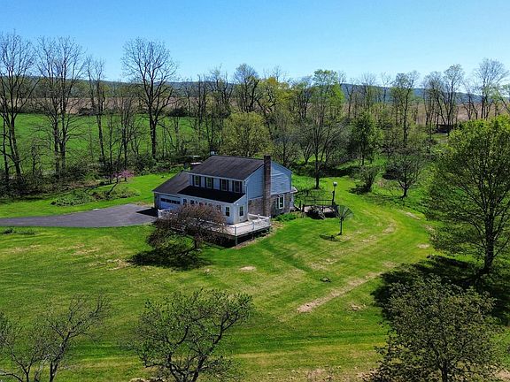 Showings start on May 2, 2024. Tucked away on a quiet country road, at the end of a long driveway, lies this peaceful slice of heaven! Enjoy the 5.5 acres of panoramic views of green pastures and mountains in every direction. This property was designed to appreciate the great outdoors with multiple porches and decks. Enjoy the unobstructed outside views of sky and star gazing within the glass solarium located off the family room. Updated Shunks eat in kitchen with granite countertops make cooking enjoyable with access to covered porch. Open concept between kitchen and family room. Handsome brick fireplace in family room. Brand new flooring, newly painted interior, updated baths and new wrought iron staircase create timeless style. Living room has a wood stove and ajoins the dining room featuring large bay window. Mudroom/laundry off garage entrance. Bilco doors to outside in basement for easy project access. Stand alone workshop located in rear of property with garage door and keep warm with wood stove in winter months. Enjoy the large variety of trees, flowers and grape vines on nearly 5.5 acres to spread out and call home!