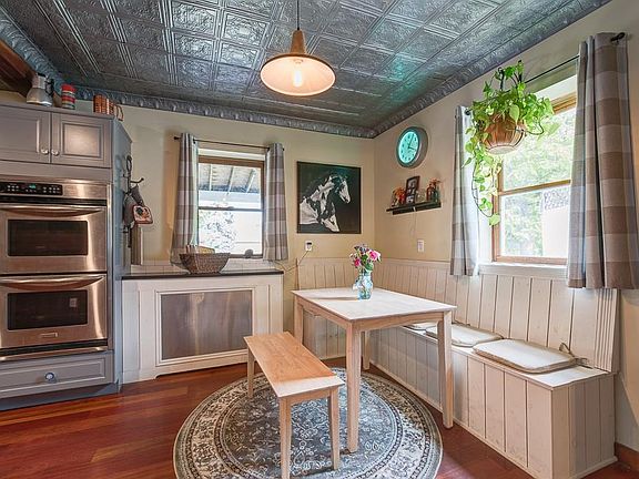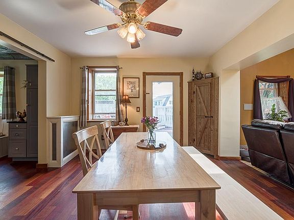 Need room? 5 Bed 2 bath home. Large fireplaced living room, dining room, eat-in kitchen. Huge front porch. Updates throughout. Brand new furnace and hot water heater. Oversized corner lot. Finished lower level with family room, laundry room and storage. Lower level has a unique painstakingly refurbished shuffle board. Not included in sale unless previously negotiated. This is a unique comfortable easy living home. The best surprise is an attached 8 car garage with it's own heat and cooling system. Must see, won't last!