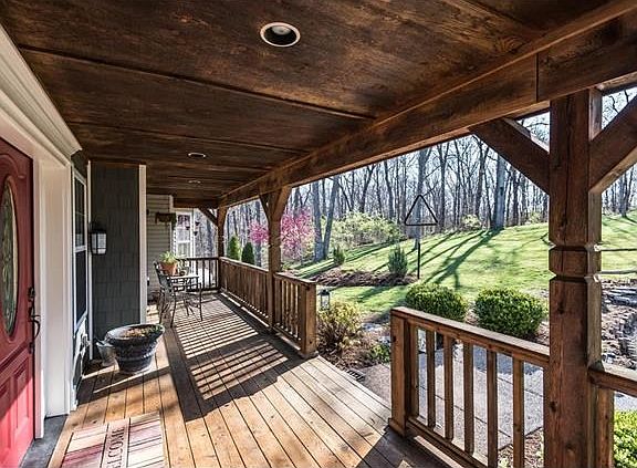 Peaceful, scenic, stars & privacy are just a few words to describe. Everythings been updated including kitchen & baths, crown molding, cased door ways, custom paint, lighting fixtures, dimmers, can lights. Great view of creek & bluff on property from screened in patio & covered patio. LL is drywalled & electrical run for future finish, bar area with cabinets included & game room! Shed with chicken coop attached to enjoy fresh eggs. Master closet has custom built shelves for storage, wood floors, bay window, ceramic floor at master bath & jetted tub. Custom wains paneling in hallway, powder room & hall bath. Bedroom has built in window seat for storage, front bedroom has walk in closet & bay window. Open floor plan with split bedrooms. Real job finished wood floors at kitchen, breakfast, hallways & foyer. Granite tops at kitchen, farm sink & new stainless steel appliances. New cabinets are soft close-2015. This will make you feel like youre living in a vacation home. Agents/Owners