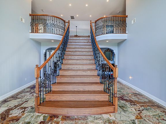 Custom Estate Home on 2,3 acres in a private setting with Telegraph Hill Park at the rear and 4 acres on the side of the property. Entering the property there are 2 stone lighted entry walls. The home features a large circular driveway that brings you to 9’ forged Iron Arched Entry Doors. The front of the home faces south in the rear sits an oversized swimming pool. Surrounding the pool is large fieldstone patio with surround wrought iron fence. Building in rear of the property is the size of a 2-car garage with electric and water. Open the front doors to palatial palace with emerald green onyx flooring with a grand wrought iron staircase. Continues in more. The 2 story great room with decorative moldings and french doors to deck. The windows have electric shades and the ceiling moldings have cove lighting. The flooring through out the main levels is scraped 5" cherry wood or onyx. Family room and office with brick wood burning fireplace's. The elegant powder room is onyx stone and marble countertop sits on a gorgeous vanity. The Kitchen is a "10" featuring custom distressed Ivory cabinets with cappuccino glaze finish and black cabinets center island with exotic gold and brown and granite countertop, vegetable sink and Thermador cook top 4 gas burner's, w/grill and griddle. Custom Cabinets w/some glass lit doors decorative corbel's, moldings, Appliances included Dacor Espresso, Cappuccino Coffee machine, Sharp Carousel, Thermadoor double oven, Dishwasher, Beverage Fridge, Sub Zero Refrigerator and Freezer all surrounded by Decorative Mosaic glass backsplash. Walk-in food pantry w/ custom glass door. Breakfast sunroom for family gatherings and a coffee lounge near the kitchen entry. There is a full sound system throughout the house. The Mudroom and laundry are located between kitchen and garage entry door. Upper level mirrors a Four Season Hotel, with 5 large bedroom suites all with gorgeous full bathrooms. And large closets Master suite with huge walk-in closet and an Onyx stone bathroom w/jetted whirlpool, large shower room and bidet Full finished lower level with staircase to driveway and rear deck and pool. Full 2nd kitchen with high ceilings, center Island, stool seating, stove, pantry and bamboo flooring. the theater with platform seating, bedroom, and luxurious full bathroom. Oversized 3-car garage w/ one 9' high door garage opening. In the rear of the property sits a enclosed storage garage, could also be turned into an office, cabbana, play room for the family with electric and water.