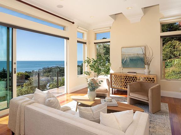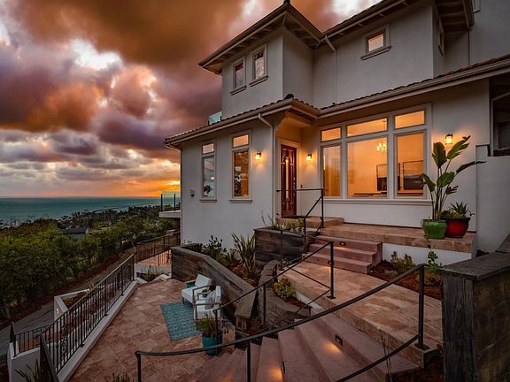See the sea for miles! Take in stunning, unobstructed ocean views from expansive windows throughout the house including Pillar Point jetty and Mavericks surf break. 5 patios offer outdoor spaces to relax and enjoy sea-to-sky solitude. You'll love watching gorgeous sunsets whether you're enjoying quiet evenings alone or entertaining friends in your formal dining room and living room, complete with cozy fireplace and built-in sound system. This custom home was lovingly designed and built by the current owners in 2008 with quality materials and attention to details, including a wall of hurricane-grade sliders, 8' tall solid wood decorative doors, and 3-story elevator. Super high 11' ceilings with crown molding and recessed lighting amplify the sensations of grandeur. The kitchen has SS appliances and granite counters. The primary bedroom suite features vaulted ceilings, a spacious balcony, steam shower and deep tub overlooking the ocean. Luxury living at its finest! Open Sat & Sun 1-4.