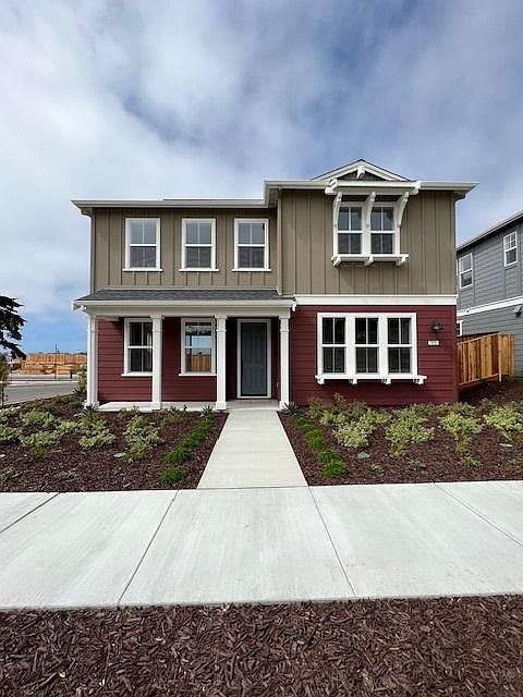 This newly-constructed home is a gem in the coveted Dunes neighborhood of Marina. Built in 2022, this charming red house sits on a corner lot, is across the street from a park, and boasts unobstructed views of local greenery and open sky. Residents can enjoy regular visits to the ocean (Ford Ord Dunes State Park), a 15 min walk or 2 min drive away. The Dunes Marketplace, with multiple restaurant options, Trader Joe's, Target, Kohls, Best Buy, and REI is also within walking distance. There are also a number of playgrounds for children and a dog park. The home entrance includes a landscaped front yard (maintained by HOA) and porch. The open floor plan between the living room, dining area, and kitchen fully covered in wood-like LVP - is perfect for families and hosting. Residents can enjoy the gas fireplace in the living room and views into the green backyard fully covered in turf and inclusive of local greenery in planters. The kitchen includes brand new appliances and plenty of cabinetry space, with charming additions such as brass pendant lights and cabinet hardware. The upstairs floor includes a very spacious primary bedroom with a large bathroom and walk in closet and includes 9 large windows to provide nearly 360 degree views. The two additional bedrooms are spacious and include closets. The home includes plenty of additional storage spaces, including cabinetry in an upstairs hallway and laundry room, as well as a walk-in closet in the stairwell. The front of the home is south-facing, providing plenty of sunshine throughout the dining area, kitchen, and living room during the day and especially toward the afternoon and evening in the backyard. Please note: no pets or smoking is a requirement to rent this home. Renter will pay for utility bills. Minimum lease term of 1 year. No smoking allowed.