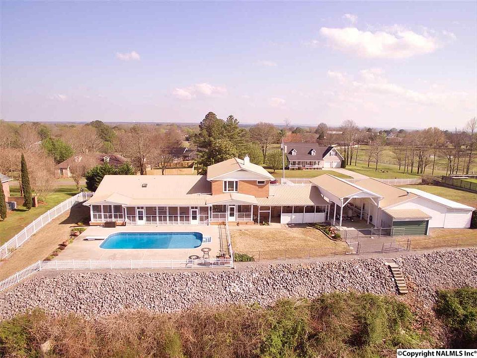 WOW!!..This view of Lake Guntersville is Mesmerizing.... This home is your very own resort setting with Lake and mountain views. super large patio with INGROUND pool, sun porches and full length screen porch. xlarge garages, work shop, carports, and storage for all the Boats and RVs you would ever want. Fenced yard all on 6.8 acres over lake and city. Home is move in ready and completely updated. New Metal roof, flooring, new beautiful bath room, private to each bedroom. HVAC, Windows, Pool Liner, Pool pump and heater..Stainless kitchen with double ovens. Huge master suite and bath with views. So many rooms with gorgeous panoramic views. You just have to see this!! All info TBV by buyer