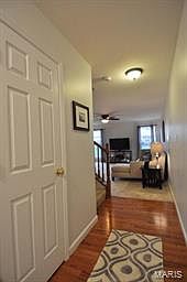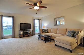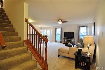 (c) 2009. Welcome to this stylish two-story townhouse conveniently located in O'Fallon. Main floor entryway has hardwood flooring and entry to half-bathroom. The great room is spacious with neutral decor and carpeting. The modern kitchen features nice vinyl flooring, custom back splash, and both a breakfast bar and eat-in area. Kitchen also opens to a patio and backyard space. French door entry to the second floor master suite with large, walk-in closet and neutral carpeting. Master bathroom has a double sink vanity, separate shower and sunken tub. There are two, additional bedrooms on the second floor also with carpeting and neutral decor, as well as a second full guest bathroom. This is a center unit in a friendly neighborhood. O'Fallon is bustling with a wide variety of retail and dining locations, as well highly acclaimed schools, parks and community events. An ideal location for an inviting town home! Location: Suburban