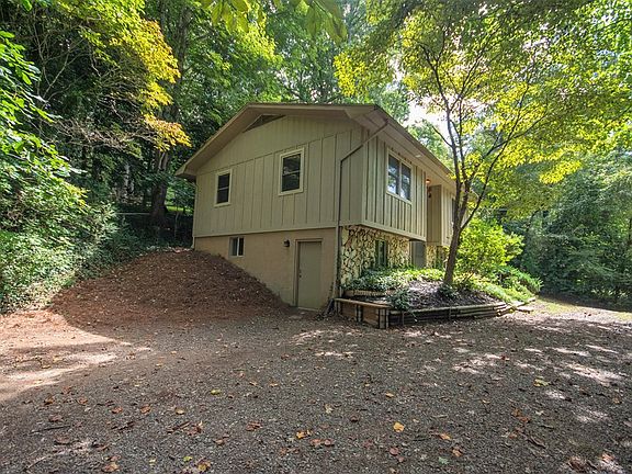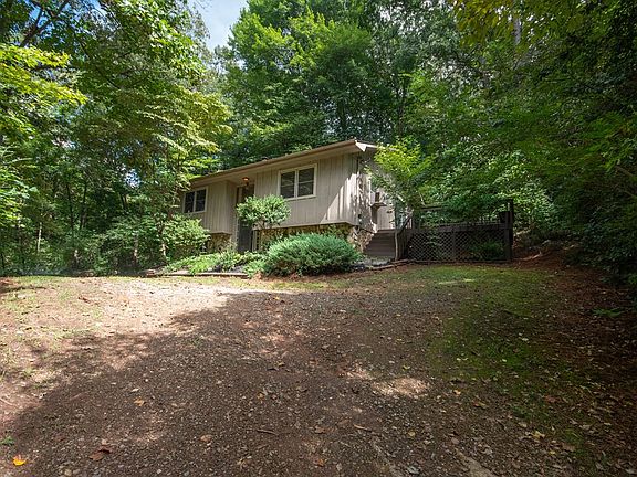 ACCEPTING BACKUP OFFERS! Located at the end of a road in a convenient location, this home's wooded property gives you a private feeling, but with super-easy access to all Franklin NC has to offer. This adorable house has a charming mid-century modern vibe. The main level features hardwood floors in the main living area, which has an open feeling and sliding doors to a great grilling deck. There are 2 nice-sized bedrooms on this floor, which share a full bathroom w/ tub-shower combo. The lower level has a cool den with a sports-bar vibe - fun for your TV room or office! There is another sleeping room on this level and a second full back, with a step-in shower. An attached workshop holds the laundry, a woodstove, and tons of great work or storage space. Repair/replace the woodstove and keep your family toasty-warm in the winters! There's an exterior door for easy access. Most of the upstairs windows have been replaced with dual-pane. Enjoy the convenience of city water, high-speed internet, and easy paved access just a block from Currahee Brewery, Restaurants, Shopping, the LT River Greenway, Dollar General and the elementary school. Welcome home!