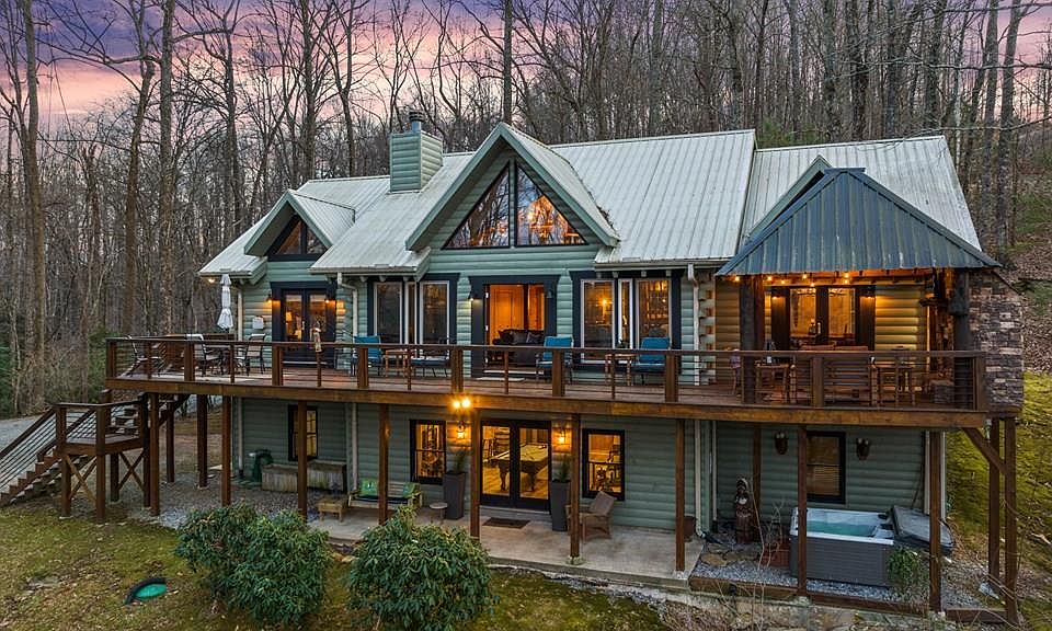BACK ON THE MARKET DUE TO NO FAULT OF THE SELLER in the Aska Adventure Area w/ breathtaking million-dollar mountain views & complete privacy! The main level features maple hardwoods, a unique spiral staircase, & a stylish built-in bookshelf. Luxuriate in the master w/ an opulent Aspen canopy bed & dual-sided fireplace. The finished basement is an entertainment haven w/ billiards. Outdoor bliss awaits on the 60ft deck w/ an inviting fireplace, panoramic views, & a TV spot. A double-sided stone fireplace adds warmth, floor-to-ceiling windows, a screened-in porch, & Sauna. Features include new flooring throughout the lower level, a custom kitchen, antler accents, & brand-new appliances. Convenience meets style w/ a 2-car garage & ample parking. The loft has a charming bunkroom & a full bath, while a tankless water heater ensures on-demand comfort. "Big Canoe Lodge" is fully-furnished, turn-key, & ready to continue on the STR program. vimeo.com/905990976?share=copy