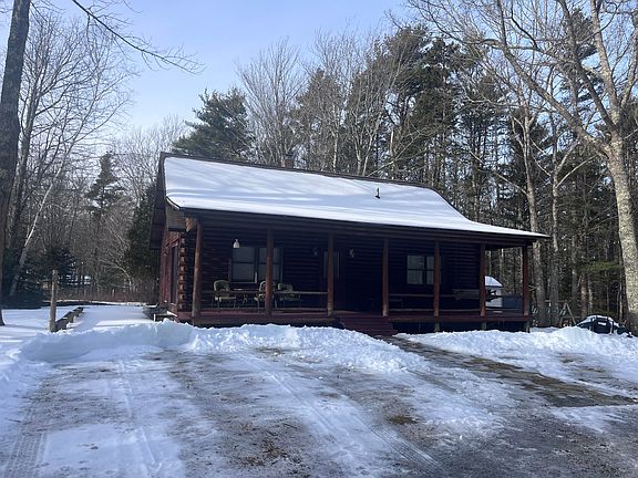 Charming Log Cabin located on close to 4 acres in Hulls Cove. Open concept on first floor with two bedrooms and a full bath and a loft bedroom on the second level. Full basement with storage area and work space. The covered front porch offers a great place to relax and take in the beauty of the trees surrounding the property. Located in Village Residential Zone, potential to add on.