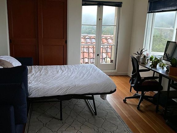 This room is part of a larger property and shares a bathroom with one other room/ tenant. The room is roughly 320 square feet (16x20) and includes two large closets and a exterior private entrance. The room can be partially furnished if desired. The home: At the top of a private drive in the beautiful Berkeley hills, this family home is enjoying a new life as a shred rental property. Nestled on a hillside adjacent to Grizzly peaks and on the edge of Tilden parks preserves, this home provides an expansive view of the East Bay. On the property you will find large shared spaces for, work and relaxation, outdoor enjoyment, a small workout room and a sauna fit for two. Down the street is the entrance to fire trail favorited by local recreationalists and a public running track. Open to all applicants but hoping to continue the current trend with professionals or graduates students. The Homeowner works in film lighting. He is in his 30s and live on the premises. Open to all please inquire!