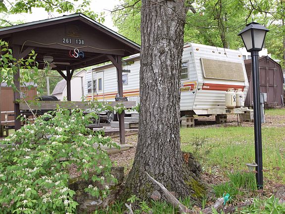 Rare find! Lake view from this lot with camper! A 1976 Coachman in good condition. Can be purchase together with adjacent lot and camper or separately! Buyer to verify energy source to appliances, heating/cooling & water heater.