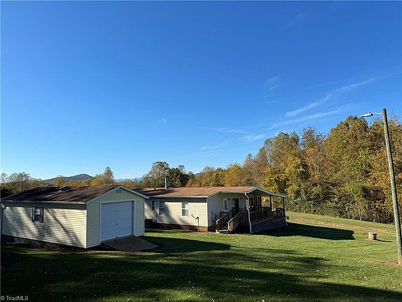 Meticulously maintained home privately located on 10.6 acres in beautiful State Road, NC. Brand New LVP flooring throughout. Updated Heat pump. Huge front covered screened-in porch perfect for those peaceful morning sunrises. Views of the mountain(Wells Knob). Partially fenced-in property suitable for horses or have yourself a mini-farm with this unrestricted land. Schedule your appointment today!