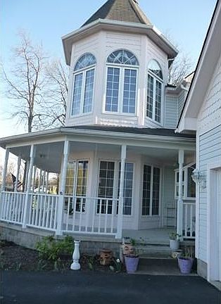 Victorian Home, ready to move in!!! 4 Bedrooms and 2 1/2 baths! Cathedral ceilings. Master bath. Elongated windows with paladian half rounds in the luxurious master bedroom! New kitchen with corian counters. Franke sink. Glass cabinets. Green house window. Other amenities include fireplace, pocket doors,extra large lot bordered by creek and trees for privacy, a/c,security system, hardwood window seat,blinds and new light fixtures Bsmt has room to roller skate, or man cave and plenty of shelves for storage! New garage door. Much, Much more. Must see home!!!
