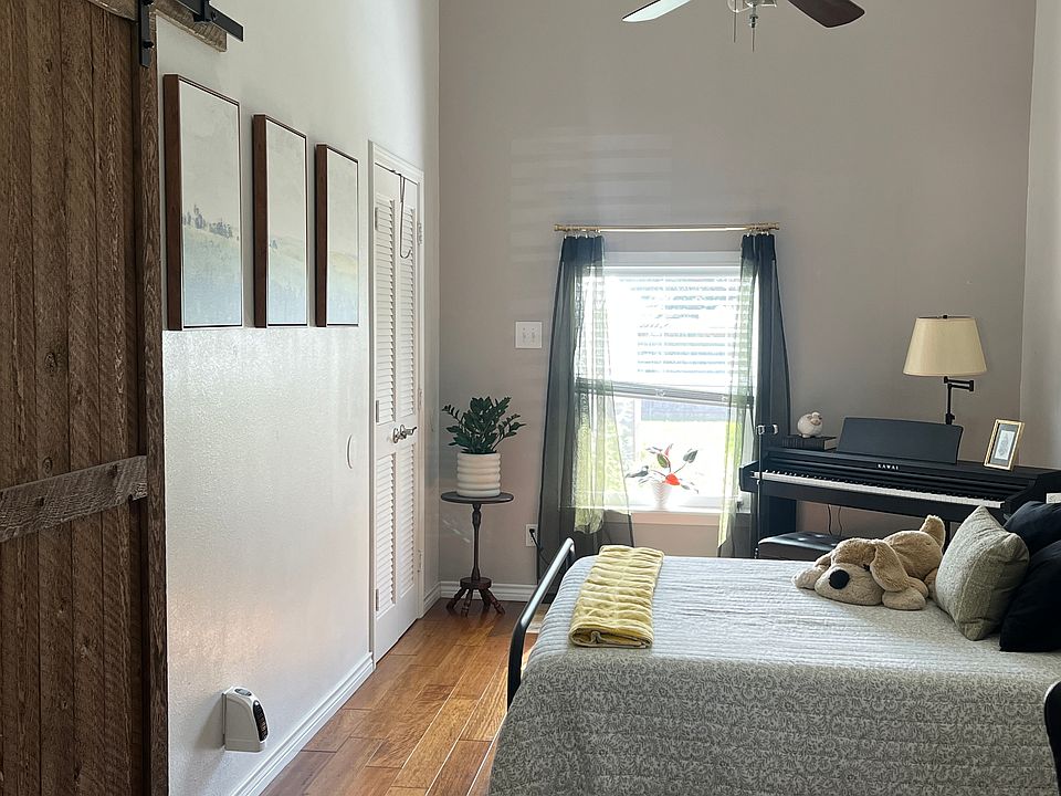 One bedroom/ one bathroom apartment located in North Rockwall near John King Blvd. Apartment is attached to owner's garage on the property. It has an open floor plan kitchen/living room, hardwood floors, and walk in shower. It includes washer/dryer combo and refrigerator. There is no oven-only a stovetop and a toaster oven. All utilities and amenities (water, electric, wifi, trash, parking, landscaping, solar) are included for an additional $300 monthly fee and will be kept in the owner's name. Covered parking is also included.