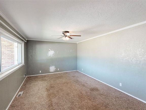 This 5 bedroom and 3 bath ranch style home has a lot of potential, offering 1897 sq. ft. mol and a large backyard. Looking at the exterior of the home, you notice the clean brick exterior, cute white shutters, spacious yard and an attached 1 car garage. With a living room entry, the home flows from a cozy living area to the combined kitchen/dining room featuring white cabinetry, good counter space and a gas cook-top. Off the kitchen, is the laundry room with built-in white cabinetry, perfect for storage. The master bedroom is nice sized and features multiple windows. The attached bathroom features built-in storage space and a bathtub with tiled shower. The additional 4 bedrooms all are sizable and provide nice closet space as well. The property also offers a large wood-fenced backyard with mature trees. Schedule your private showing today!