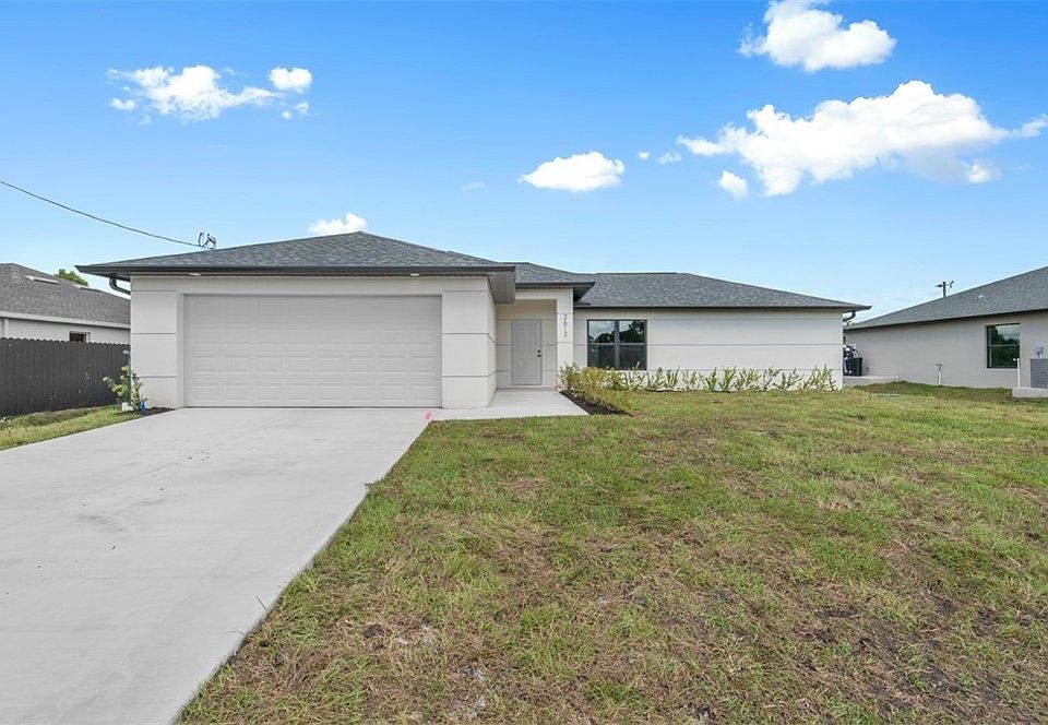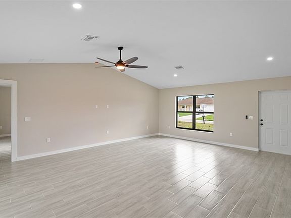 BRAND NEW 2025 New Construction WITH 1 YEAR BUILDER WARRANTY after move in! Priced to sell and the location is great, with new construction sprawling everywhere. This 4 bedroom, 2 bath Eagle Model home has everything you are looking for with IMPACT RESISTANT WINDOWS AND DOORS & Designer Flooring throughout (NO CARPET!) 12' VAULTED ceilings right when you walk in, spacious entrance that makes it stand out. Double vanity with two spacious walk-in closets. Do not miss out on this new home! Priced to sell quickly
