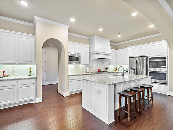 Waterfront beauty nestled behind the gates at Lakes of Cypress Forest! Designed for entertaining & ease, this one-story stunner sits comfortably on an oversize 10,400+sqft lot with 3-car garage. Awash in natural light & offering picturesque views from the wall of windows, the open floor plan flows effortlessly throughout the home. Overlooking the family room, the sophisticated kitchen boasts elegant white cabinets, stainless appliances, double ovens, granite countertops and oversized island with bar seating. Private study separated by french doors, plus an additional flex space. Primary suite is a true retreat with inverted ceilings, grand walk-in closet, dual vanities, soaking tub and walk-in shower. Relax outdoors on the covered patio with a breathtaking view of the lake from your backyard! Impeccable access to 45 & 99 as well as Woodlands attractions! Community amenities include scenic lakes, trails, playground, volleyball court, pool, splash pad and clubhouse. Never flooded!