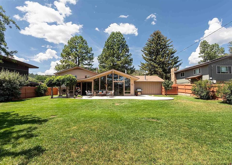 Nestled within the picturesque Crestview neighborhood, this charming four-bedroom, three-bathroom home sits atop a spacious rim lot, offering breathtaking views of the surrounding vistas. A seamless blend of comfort and elegance, the home welcomes you into a large living room. The adjoining kitchen, featuring a breakfast bar and dining area, flows effortlessly into a second, sunlit living space. Here, floor-to-ceiling windows frame the view, while a freestanding stove adds a touch of warmth. The area also features a built-in bar, perfect for hosting guests. Adjacent to the living space is a tranquil sunroom offering an ideal spot for a home gym or relaxation area. Just up a short flight of stairs, you'll find three spacious bedrooms and two well-appointed bathrooms. The primary suite is a haven of natural light and serenity, complete with a private bath. On the lower level, there is a den with a fireplace for cozy evenings. An additional sizable bedroom with a walk-in closet, a bathroom, and convenient laundry and storage spaces complete this level. The home has been thoughtfully updated and meticulously maintained, ensuring modern comfort and style throughout. Outside, the property is a true oasis, with a beautifully landscaped, low-maintenance perennial garden and majestic trees. The fully fenced backyard offers a lush lawn area and a lovely backdrop of the surrounding landscape. The home also includes an oversized two-car garage with ample storage space and a wonderful workbench area. Relax and unwind in the privacy of this rim lot retreat, a truly special place to call home.