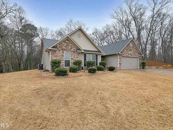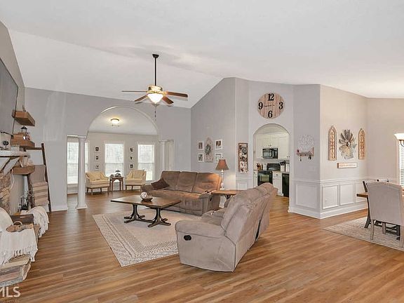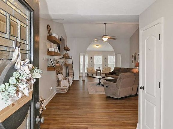 Perfect 4BR/2BA craftsman style home on 1.06 acres in the cul de sac. Well maintained neighborhood but with no HOA. Beautiful stone accented exterior and low maintenance vinyl siding. Home features foyered entry onto new Luxury Plank Vinyl flooring throughout the main living areas. Spacious great room with soaring ceilings, neutral gray paint, and tons of natural light, separate dining area, and a sunroom off the back of the house. Eat in kitchen has all white cabinets with plenty of storage, granite countertops, a subway tile backsplash, and a pantry. Master suite has plenty of space, trey ceilings, master bath features double vanities, separate shower and a soaking tub with a shiplap accent wall and custom floating shelf. Large level back yard for entertaining or play.