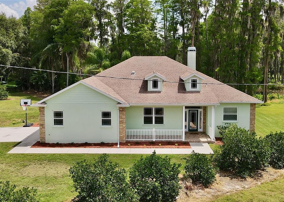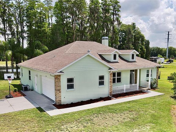 TRANQUIL WATER VIEW! 2125 SQ. Ft. Custom Built Home On OVER 1 ACRE of Land. This Spacious One Story Home has 4 Bedrooms & 2 Baths and features a HUGE Owner’s Suite with Window Seat, 2 Walk-In Closets and Glamour Bath with Vanity, Separate Walk-In Shower & Relaxing Jetted Tub. Open Floor Plan with Panoramic Views of the Water and a Breezy Screened Lanai with Pavers to enjoy your morning coffee or evening refreshments. The Great Room has A Cozy Stone-Faced Fireplace, wood flooring and Opens to the Eat-In Kitchen that offers Silestone Countertops, Pantry, Raised Panel Maple Cabinetry and Stainless-Steel Appliance Package. There is also a sound insulated MEDIA/BONUS/THEATRE Room for enjoying “Movie Nights”!!! Split Floor Plan offers privacy. There is currently a Garage Conversion (not included in the square footage, that offers a 4th Bedroom/Office option for working from home. Convenient Interior Laundry with Wash Tub. There is also room for a pool if that was desired in the future. No Deed Restrictions, No Costly CDD’s and No HOA. You won’t even have a water bill because you have a private well and septic. Schedule your appointment today!