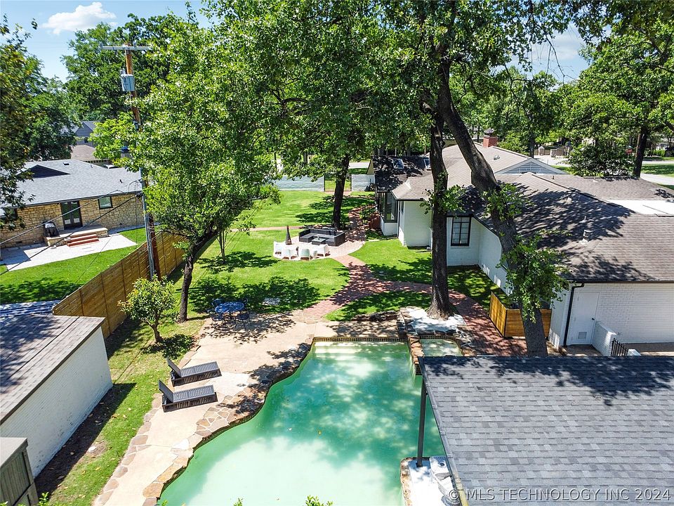 Incredible updated 3 bed with office, 3.5 bath Ranch home positioned on a dead end street. This home sits on a .75 acre lot in one of the most sought after locations in midtown. Chefs' kitchen with beautiful center island open concept with a wet bar and lots of great windows looking out onto the beautiful back yard. Backyard has a nice pool with a new covered outdoor living space and a great storage area. Beautiful Oak trees and truly a park like atmosphere with privacy being key! This property has so much potential beyond what it currently is with 1 being splitting the lots and building 2-3 new homes. Garage could easily be converted into a game room, 2nd living or in-law- suite. Too much greatness to list and a must see!