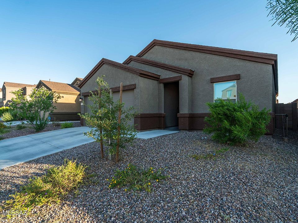 Beautiful 4BD/2BA DR Horton home in Tres Pueblos. Open floor plan with living & dining areas. Kitchen features stainless appliances with gas stove, breakfast bar, recessed lighting and granite counters, all appliances stay. Spacious primary bedroom with en suite and large walk in closet. Enclosed backyard with covered patio & pavers offers privacy, perfect for relaxation or outdoor entertaining. Low HOA fees, no rental restrictions. Convenient to schools & I-10. Don't miss out, come and take a look today!