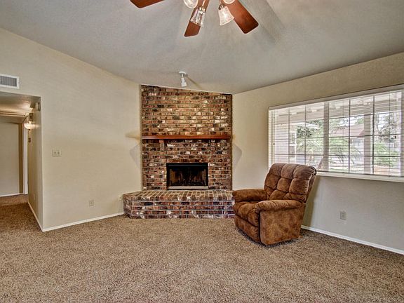 Beautiful home in a fantastic neighborhood in the desirable Mountain View High School area. This spacious Great Room floor plan comes with a brick fireplace and open kitchen with breakfast bar. A breakfast nook has views of the pebble tec play pool, mature landscaping & covered patio. Large laundry room off kitchen with utility sink and a pantry. A centrally located room is perfect for exercise equipment or a home office. The master bedroom is secluded in the back of the house with lots of natural light, a separate lounging area, private exit to the patio, and a huge walkthrough closet that delivers you to your own spa-like bathroom oasis! Bathroom includes a soaker tub, rain head shower, and 72" dual sink vanity. Wood plank tile throughout common areas with carpet in all bedrooms.