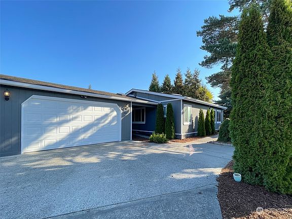 Very private, triple-wide home in Little Mountain Estates, one of the top 55+ parks in WA. Coveted outside perimeter location, 3 bed/2bath and 1,700+ sq ft to call home! Large floor plan, great for entertaining w/big dining room and kitchen with gas stove + 2 ovens. Remodel about 10 yrs ago included roof, all windows, trim, and skylights. LVP floors installed about 1.5 years ago, crawl space redone in 2018, water heater 5 y/o. Breezeway between the 2-car garage (with workspace!) and house. No-maintenance backyard: leave as is and enjoy zero yard work, or design your dream garden from scratch! Park amenities include clubhouse w/heated indoor pool. Great location close to all services, trails, medical & hospital, plus easy I-5 access.