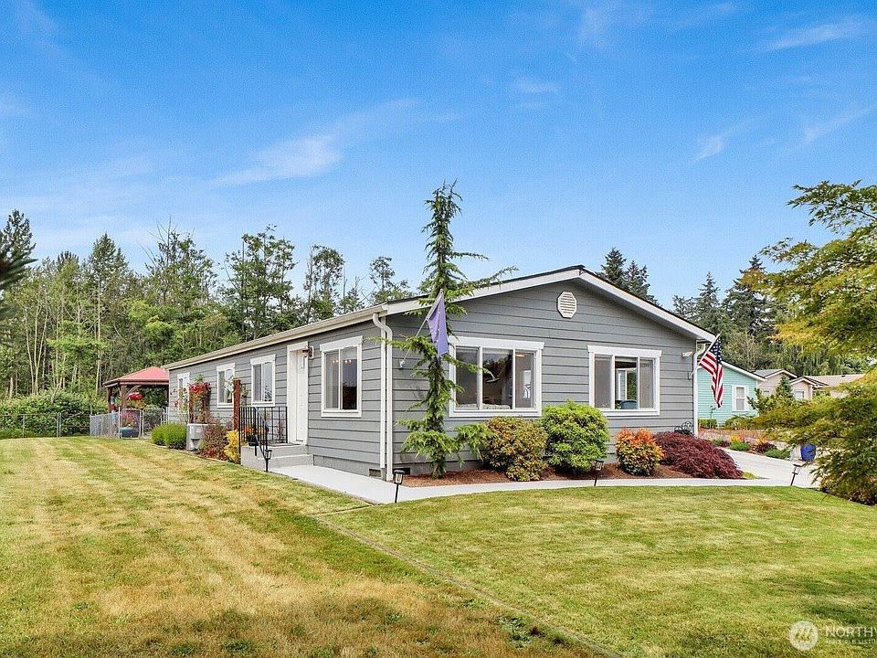 Welcome to this beautifully maintained 3-bedroom, 1.75-bath home nestled in the sought-after 55+ community of Little Mountain Estates. Thoughtfully updated with new flooring and fresh interior paint, this home features vaulted ceilings that create a spacious, airy feel. Enjoy the outdoors in your huge fenced backyard, complete with a covered patio, flower and vegetable gardens, and a gardening shed for all your tools. A dedicated shop space is perfect for hobbies or additional storage, and the 2-car garage offers ample room for vehicles & more. This home combines comfort, functionality, and serene surroundings—perfect for relaxing or entertaining. Don't miss the opportunity to own one of Mount Vernon's most peaceful & welcoming communities!