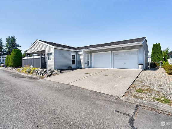 This home is on a corner lot with a rare double car garage that is 22 x 22. Also features a extra large covered outdoor patio with small storage area and extra parking for visitors. Enjoy this spacious home featuring living room, dining room, and breakfast room / sitting room off sunny "L" shaped kitchen. Both bedrooms are spacious and there is a gas freestanding fireplace in LR, Beautiful "55 & Over" park, featuring club house with indoor pool, gated entrance and secure RV parking.