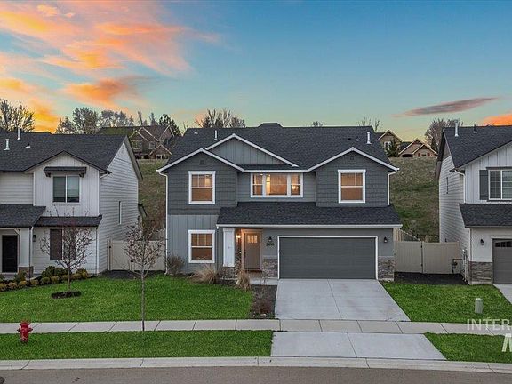Close to all Eagle has to offer! 2773 sf two story with no rear neighbors and across the street from neighborhood park. Sought after floor plan with 4 full bedrooms, an office and bonus/loft area. Large master suite with dual vanities and walk in closet. Main level has 9' ceilings, EVP flooring throughout great room, lots of windows and privacy. Kitchen boasts quartz countertops, island, stainless steel appliances, window at sink, and pantry. Lots of storage throughout. Generous back yard with a maintained hillside behind. Walking or riding distance to Guerber Park with splash pads, sports fields, and sledding hills. Head to downtown Eagle for a meal or the Eagle Bike Park just around the corner. South facing driveway is great in the winter. Top rated Eagle schools!