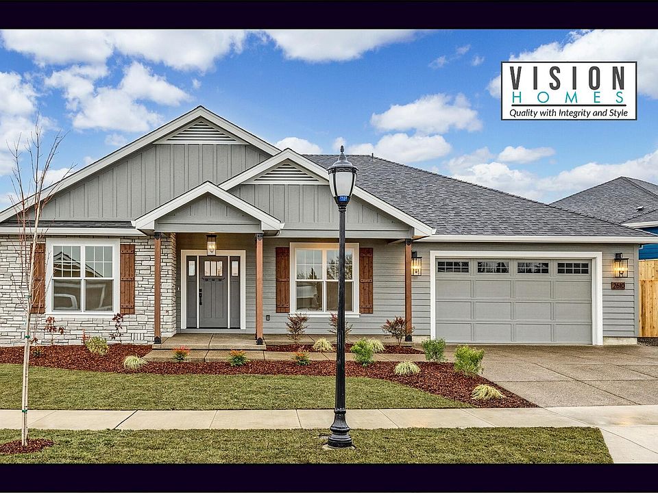 New Quality Built Vision Home located in Cedar Landing, a well-designed East Medford development. Gorgeous 2,130' sq.ft., single level living, 3 bedroom, 2 full bath home with open & spacious floor plan, incredible master suite, custom kitchen w/walk-in pantry & large island w/breakfast bar, great room with coffered ceiling & gas fireplace, covered patio access, and delightful finishing touches throughout. Attention to detail takes center stage in every Vision Home. The well-crafted interior includes granite counters, hardwood, quality carpet, & tile floors, stainless steel appliances, gas range/oven, nice utility room, and much more. Genuine regard for quality, creative excellence and value has made vision Homes a respected leading home builder in Southern Oregon. This beautiful home will be a solid investment for generations to come.