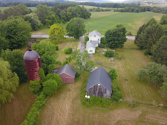As we all know location is key and this country farm house is located in a highly coveted area. Just minutes from the Village of Cazenovia and nestled on 5.5 acres makes this a real find. Hardwood floors, old classic woodwork, and wide wooden flooring upstairs retain the wonderful character of its time. A possible 4th bedroom and the laundry are on the first floor. The two outbuildings are in great shape and have multiple use possibilities as garages, shops or studios. Storage is in abundance with a stairwell access to the attic in the house and above one of the buildings. Outside you'll find a partially fenced in yard, a mature landscape, and gardens that could easily be rejuvenated. A small creek runs along the property adding that tranquil sound and feeling to enjoy some down time. The possibilities are here, available and all in the highly regarded Cazenovia School District. Welcome to beautiful Cazenovia !