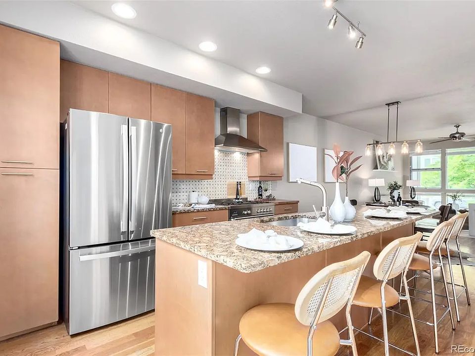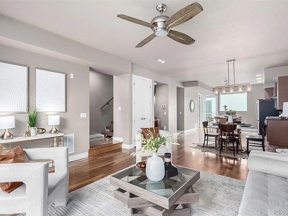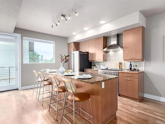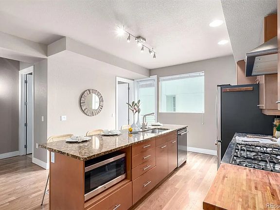 This modern 2-bedroom, 3-bathroom townhome offers a great combination of comfort, space, and convenience in one of Denver's most walkable neighborhoods. The main level features an open layout with tall ceilings, hardwood floors, and plenty of natural light. The kitchen includes stainless steel appliances, granite countertops, flat-panel cabinets, and an island with seating. Upstairs, there are two primary bedrooms each with its own private bathroom and walk-in closet. The lower level provides a flexible bonus space that can be used as an office, gym, or media room. Outdoor spaces include a private balcony with a grill and a large rooftop deck with city and mountain views. Additional features include a two-car garage, in-unit laundry, and access to the community fitness center and shared rooftop lounge. Located one block from Jefferson Park and close to downtown, restaurants, breweries, and public transportation. Easy access to I-25.