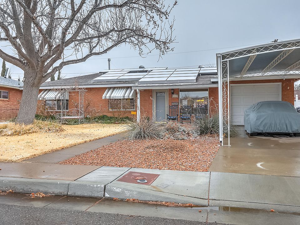 This immaculate home in the heart of Albuquerque is ready for a new owner. Home has been updated throughout in the past few years. Updates include the beautiful kitchen with new cabinetry, SS appliances, gas stove, solid surface counters and tile backsplash. Newly updated bathrooms including a handicap accessible master shower. Newer windows, electrical panel upgrade, water heater, refrigerated A/C, roof, light fixtures and more! Don't forget the interior laundry room that leads to a bright and cheery sunroom for additional space. Huge yard with 2 large storage sheds, hot tub under a covered patio, and fenced in garden area with established vegetation. Home is solar powered as well. Located minutes from I-40, ABQ Uptown and more....you don't want to miss your opportunity to get this home.
