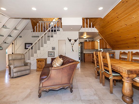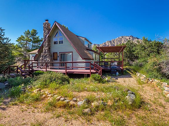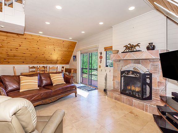 Charm, charm,charm! No cookie cutter here. Darling A-Frame cabin bordering national forest service. Open main living area with wood burning fireplace, tile flooring and tongue and groove pine ceilings. Kitchen features light cabinetry, granite counters and stainless appliances. Two bedrooms and .75 bath on main floor. Lots of built in storage. Cozy loft with new carpet, wood ceilings, lots of light and a very convenient half bath. Great outdoor living with wrap around deck and private, partially covered large deck area with views. Borders forest service - step out your back door and hit the trails. Great use of space in this small but mighty home!