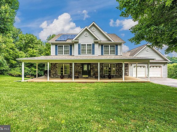 Welcome Home to this gorgeous colonial with gutter guards, solar panels through Tesla with snow shields on the architectural roof, huge stoned wraparound front porch, deck with steps to back yard with shed, and partially finished walk out basement with cold cellar. The kitchen has been remodeled and has oak cabinets, stainless steel appliances, granite countertops and a beautiful backsplash opening to a family room with stunning stone wood-burning fireplace. You'll also find a spacious living room and dining room with chair railing and crown molding. There is a full bath and laundry room on the main level. Hardwood stairs lead you up where you'll find a large owner's suite with luxury bath with double sinks, jetted tub, tiled shower and tiled floor. There are two other large bedrooms and a hall bath with double sink . The lower level is partially studded with electric and rough-in for bath, a walk-out entrance, a water softener and reverse osmosis system for the whole house. The furnace has been maintained twice per year by these meticulous owners. There is a solar attic fan to keep the attic cool and the water heater is only 4 years old and the well pump 2 years old. Double hung vinyl windows, six panel doors, security system,.... the list goes on and on. Convenient access to Rt. 340, restaurants, shopping. A must see!