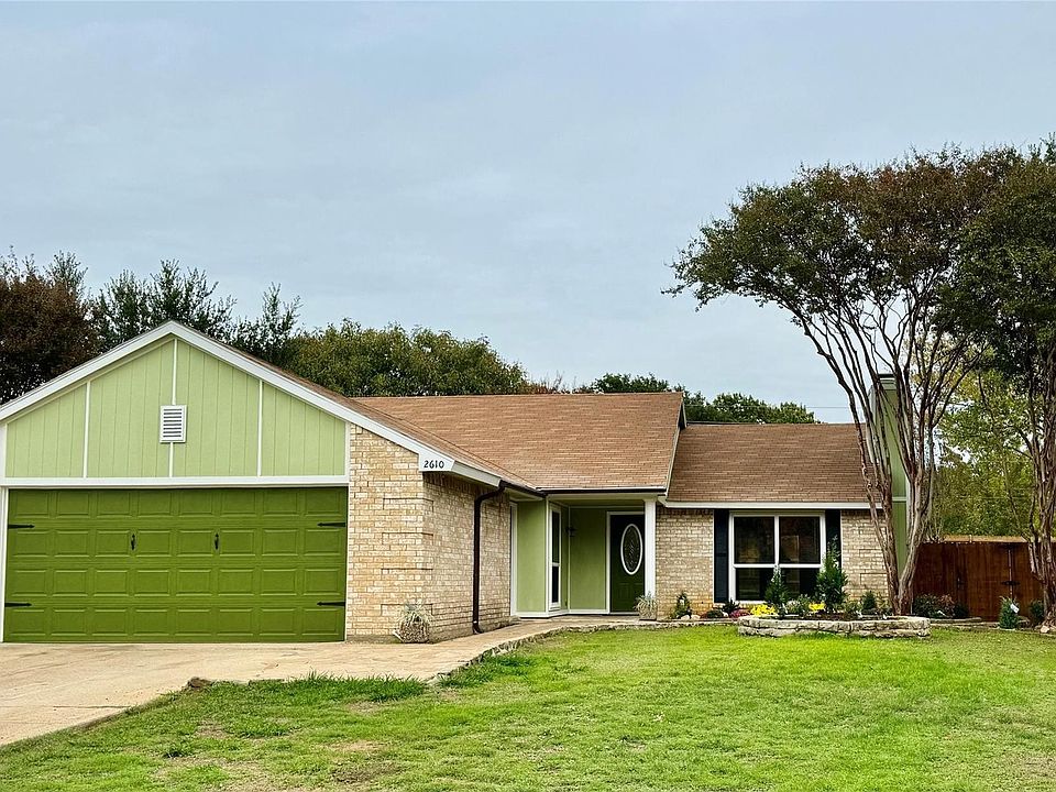 Beautifully Updated Home with Modern Style and a Touch of Character!Welcome to this charming single-story home that blends warmth, character, and thoughtful updates throughout. From the moment you arrive, youll notice the inviting curb appeal with its cheerful exterior accents and spacious front yard. Step into the bright and open living area featuring vaulted ceilings, dual ceiling fans, and a stunning modern fireplace wrapped in dramatic black tile, perfect for cozy evenings. The layout flows effortlessly to the backyard through double-doors, leading to a covered patio and large private yard. The kitchen is a true showpiece boasting custom two-tone cabinetry in fresh green hues, granite countertops, stainless steel appliances, and designer lighting over the island. This space offers both function and flair for preparing those nightly homemade dinners. The primary suite provides a peaceful retreat with an updated en-suite bath featuring a dual-sink vanity, granite counters, and a custom walk-in shower with pebble-stone detailing. Additional bedrooms are spacious and versatile ideal for family, guests, or a home office. A second remodeled bathroom with modern finishes completes the layout. Outside, enjoy a backyard designed for relaxation and gatherings, complete with a flagstone patio and ample space. 2025-11-18