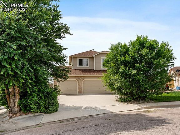 Step into this lovely 2-story home, complete with a huge finished basement and a 3 bay garage. Conveniently located near all that the Powers corridor offers, as well as easy access to all military bases in Colorado Springs! Situated in a quiet cul-de-sac on a large lot that will accommodate RV parking, this home has been nicely updated, with new paint in 2023, new kitchen appliances less than 5 years old, new roof and gutters in 2024, new washer and dryer in 2023, new bathroom sinks and faucets in 2022, with an updated kitchen. And did I mention NO HOA??? Large back yard waiting for new homeowners to turn it into their own backyard retreat!