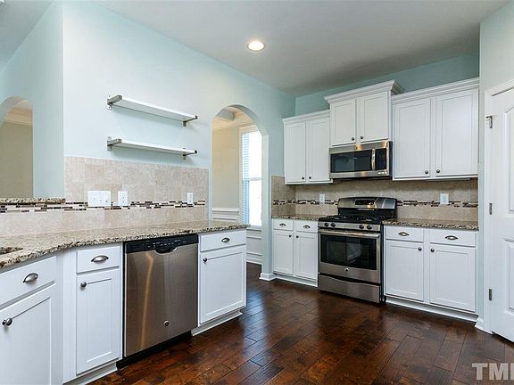 Immaculate move-in ready home! Open floor plan features gorgeous hardwoods throughout main level. Beautiful kitchen w/white cabinets, granite countertops, tile backsplash, gas range, & stainless steel appliances. Dining room with coffered ceiling. Family room with gas fireplace. Spacious master suite with tray ceiling, covered porch, large bath, & walk-in closets. Loft area makes for a great bonus space. Community playground & pool. Desirable location convenient to RTP & Southpoint. A MUST SEE!