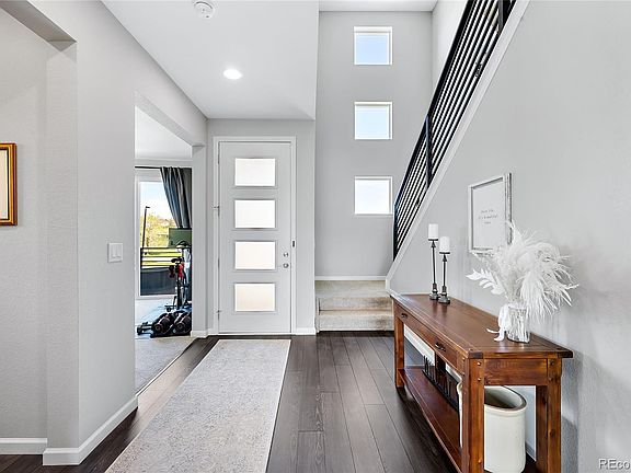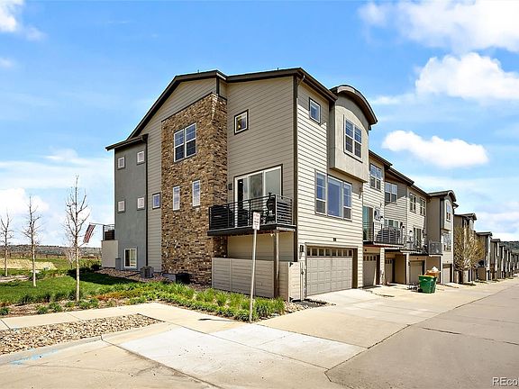 Lokal Home's modern end unit has 3 bedroom, 3 bathroom & 2 car garage w/ 240 volt prewire. In superb condition, the "Andrew" model has great natural light, a main level study, and open layout that will fit your large furniture. Chef's kitchen features quartz countertops, abundant white cabinetry, stainless appliances, & large eat-in island. Upstairs Jack 'n Jill bathroom. Royal Primary Suite. Custom ship lap, cubbies/storage, lighting, fans & accents. Front and back exterior decks. Just outside your door is Castleview High, Castle Rock Middle, Centura hospital, Meadows Town Center, The Grange & Taft House with pools, schools, restaurants, tennis courts, hiking & biking trails. Easy access to I-25 & Santa Fe, Phillip S. Miller Park & Activity Center, Outlets at Castle Rock, Promenade & Downtown.