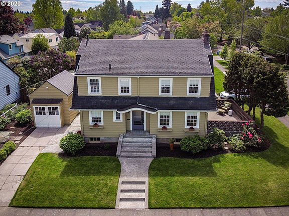 Classic old Portland colonial home on beloved Klickitat St. sits prominently in the heart of Alameda, a highly desirable neighborhood. Situated on a corner lot. 3 bdrm/1.5 bath with charming original features: spacious living rm with fireplace; French doors leading to adjourning garden patio; built-ins; beautiful wood floors throughout. Int/ext painted in 2018. Garage. Large open basement w/separate entrance, endless possibilities. Convenient to schools, shopping & restaurants. Bike score 96.