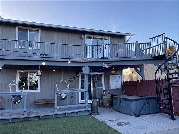 Beautiful and spacious 3-bedroom, 2.5-bath home located near downtown and the University area. This home offers a 2-car garage featuring a custom 30-tote storage rack for all your organization needs. Enjoy a large front yard with lush grass, mature trees, and a well-designed compacted rock landscape. On the side lot, you'll find double swing gates leading to a 15x8 Tough Shed with a locking door perfect for secure on-site storage. You will also find a flat area for those looking to take up gardening. The expansive backyard is an entertainer's dream, featuring a double-level deck with a spiral staircase leading to the upper level, where you'll enjoy breathtaking views of downtown Reno and the casinos lit up at night. The backyard also boasts high-end pet-friendly turf, an 8x8 shed, and elegant rock landscaping. Inside, the home offers three upstairs bedrooms, including a spacious master suite with an en-suite bathroom. A second full bathroom is conveniently located in the hallway. The main level features a modern kitchen with a butcher block island, a small bar area, a dining room, and a bright living room with large windows that flood the space with natural light. A half-bathroom is also located downstairs for added convenience. In addition all updated stainless steel kitchen appliances and washer/dryer. All floors in house are high end laminate. This home perfectly blends comfort, functionality, and style all in a prime location! Renter pays for electricity, gas, water, internet, garbage, sewer.