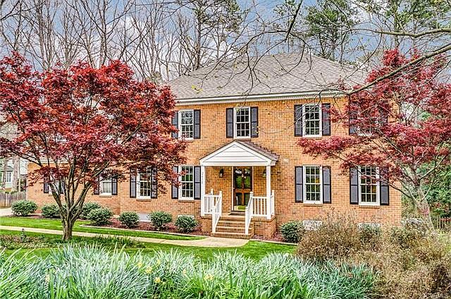 Spacious 5 bedroom brick front Colonial! Situated on a beautifully landscaped 0.6 acre lot and meticulously cared for by original owners. This home boasts hardwood floors throughout and ALL NEW REPLACEMENT WINDOWS! Formal living & dining room with crown molding, family room with built-ins & fireplace, bright Florida room with skylights and access to rear deck. Large eat in kitchen with walk-in pantry, granite countertops, desk area and tons of storage. On 2nd level, master suite features dressing area & large walk-in closet. 4 additional spacious bedrooms, full bath, and laundry room on 2nd level. Additional features include new insulated crawl space with B-dry system 2013, new 2nd floor heat pump 2014, front and side irrigation system, attached 2 car garage, and a huge fenced back yard with tons of privacy! The Colonies lifestyle offers pool, tennis court, and clubhouse where membership is optional. All of this located in the Godwin School district just minutes from Short Pump offering easy access to world class shopping and dining. This one you must see for yourself. Schedule your showing today!